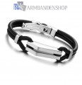 Siliconen armband met rvs accenten. De armband is 21 cm lang en 1 cm breed, en heeft...